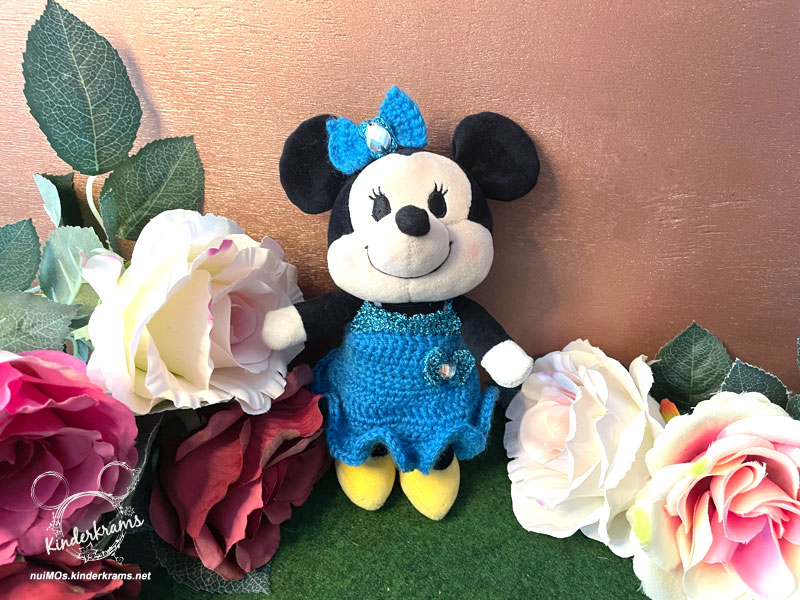 nuiMOs sind nicht nur toll für einen selbst, sondern auch zum Verschenken. Und so wollte eine Minnie Maus gerne verreisen zu einer kleinen Freundin in die Nachbarschaft. Aber nur mit einem Kleidchen wäre das im Gepäck nicht adäquat gewesen. Daher bekam Minnie noch ein blaues Kleid mit passender Schleife dazu. Vor Freude hielt Minnie ein Wunschparfüm und eine Schampus-Flasche hoch – na wenn das kein Grund zum Feiern ist 😉