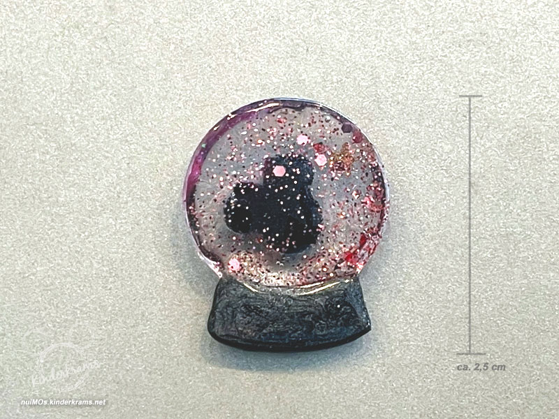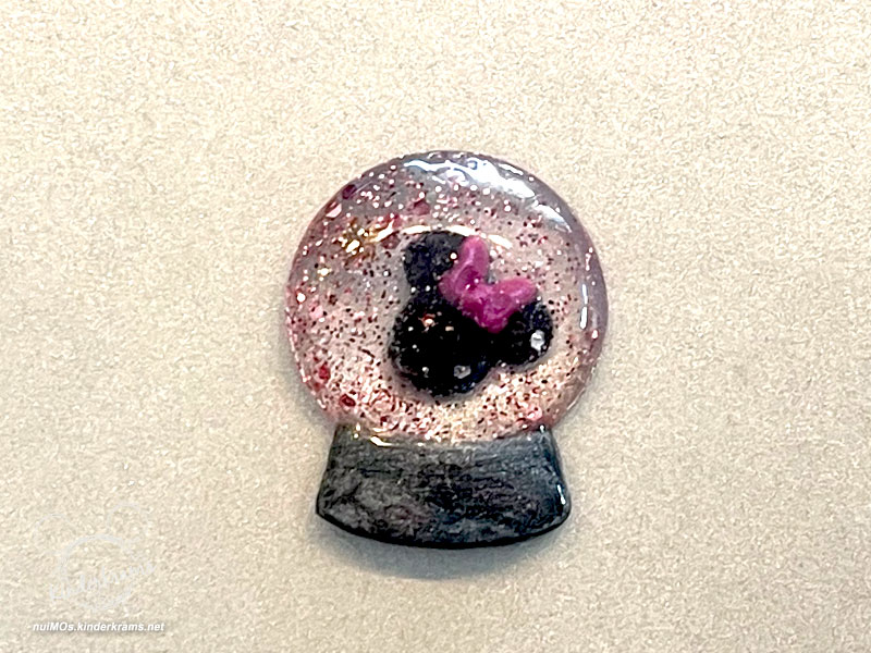 Voilá! Hier ist Minnies erste und selbst-designte Traumkugel. Sie hat ihren eigenen hübschen Minnie-Maus-Kopf mit einer rosanen Schleife in rosa Glitter gesetzt und einen anthrazitfarbenen Sockel erstellt. Wir sind schock-verliebt in diese niedliche Traumkugel und freuen uns schon auf weitere.